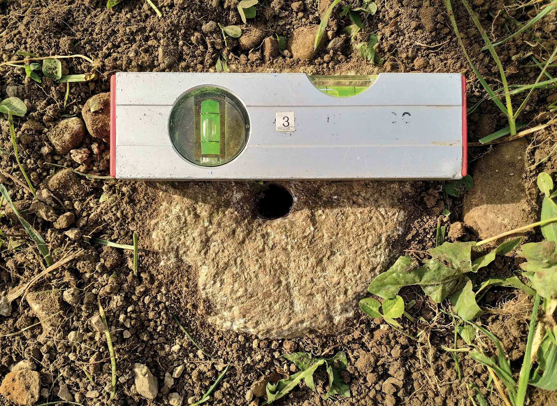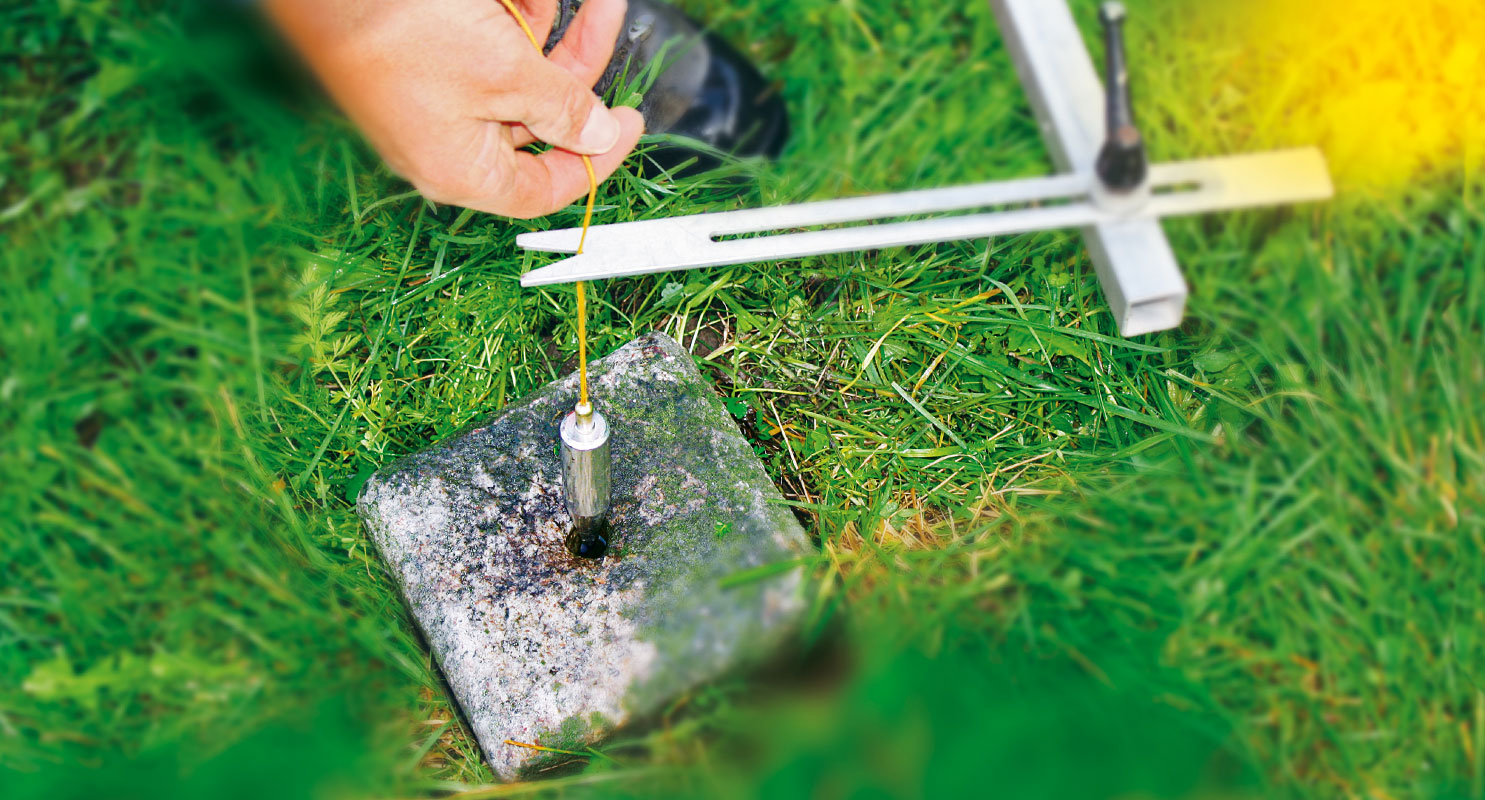 Sind bestehende Punkte nicht mehr sichtbar, suchen wir sie auf, legen sie frei, kontrollieren sie und stellen sie falls nötig wieder instand. Fehlt das Grenzzeichen, stecken wir den Grenzpunkt an seinem ursprünglichen Ort wieder ab – wir «rekonstruieren» den Punkt – und kennzeichnen den Punkt durch Setzen eines neuen Grenzzeichens.