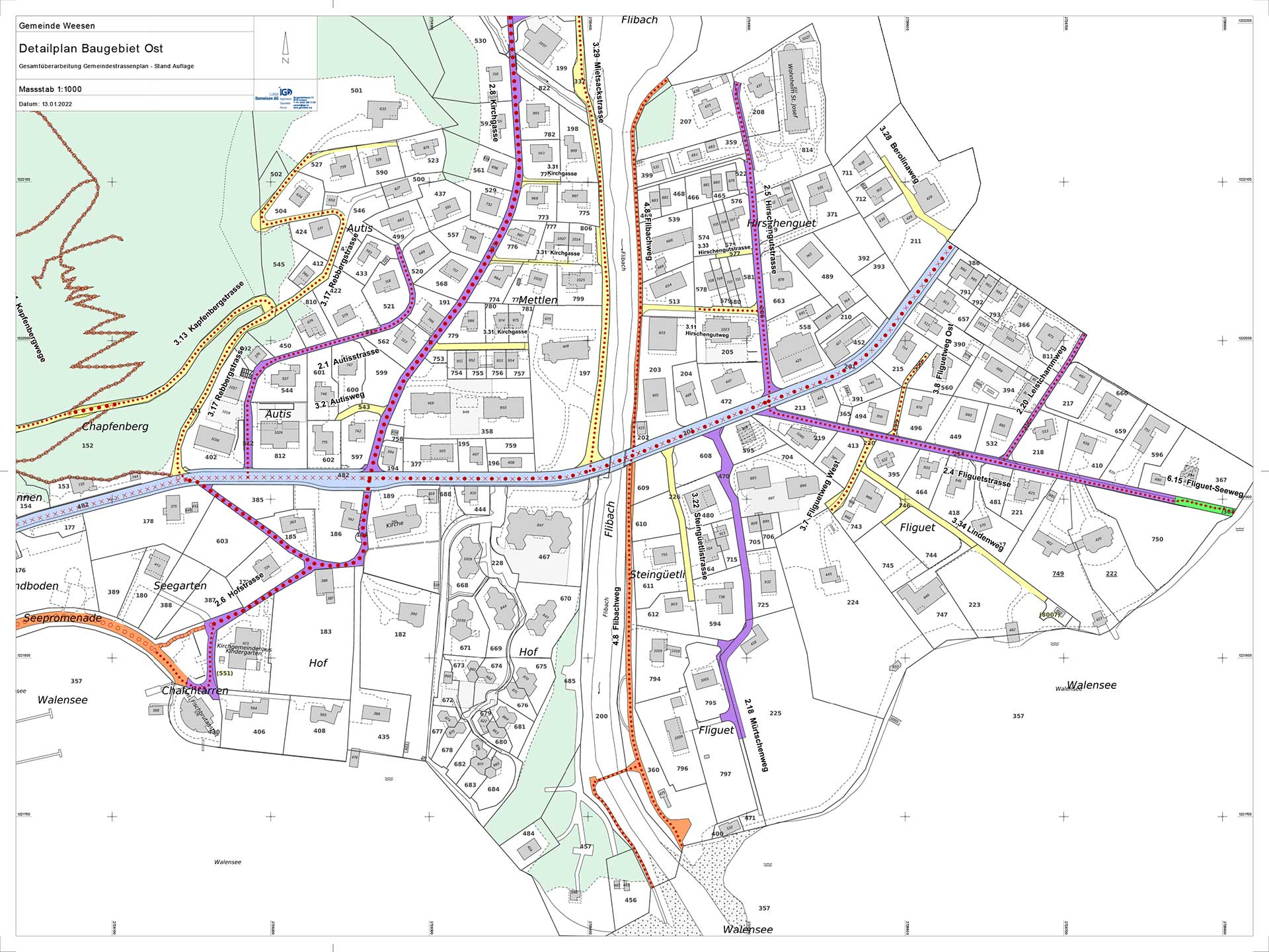 Der Strassenplan einer Gemeinde legt den Umfang des Strassen- und Wegnetzes fest. Er regelt die öffentliche und private Nutzung aller Strassen und Wege und definiert, ob Gemeinde, Kanton oder Private dafür zuständig sind. Weiter gibt der Strassenplan darüber Auskunft, wie die Strassen und Wege klassiert sind.